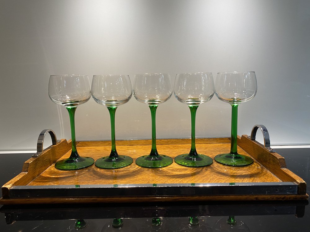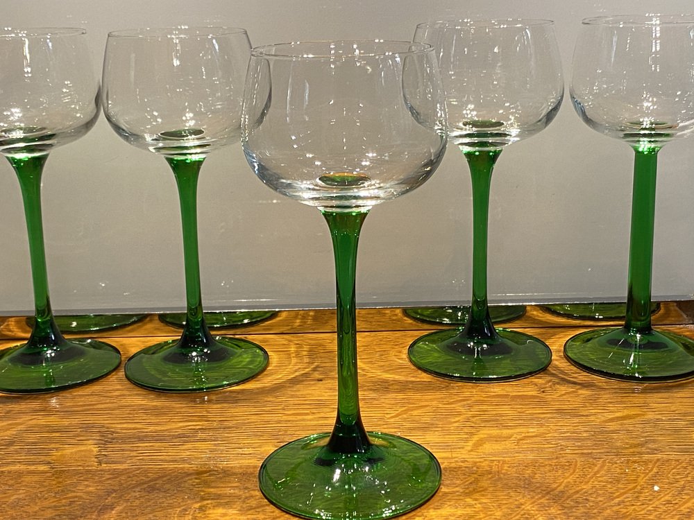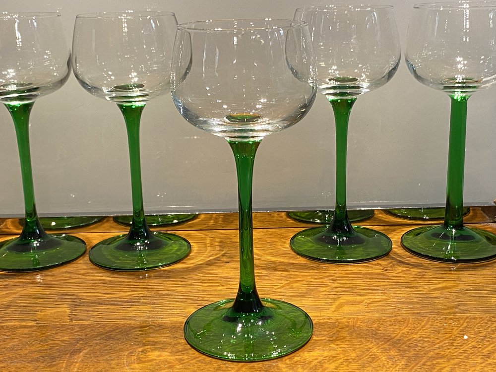 Vasos Luminarc Verrerie Darques en verde, Francia, años 70. Juego de 5
