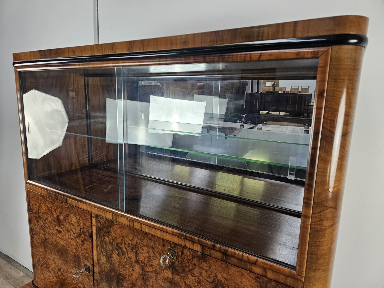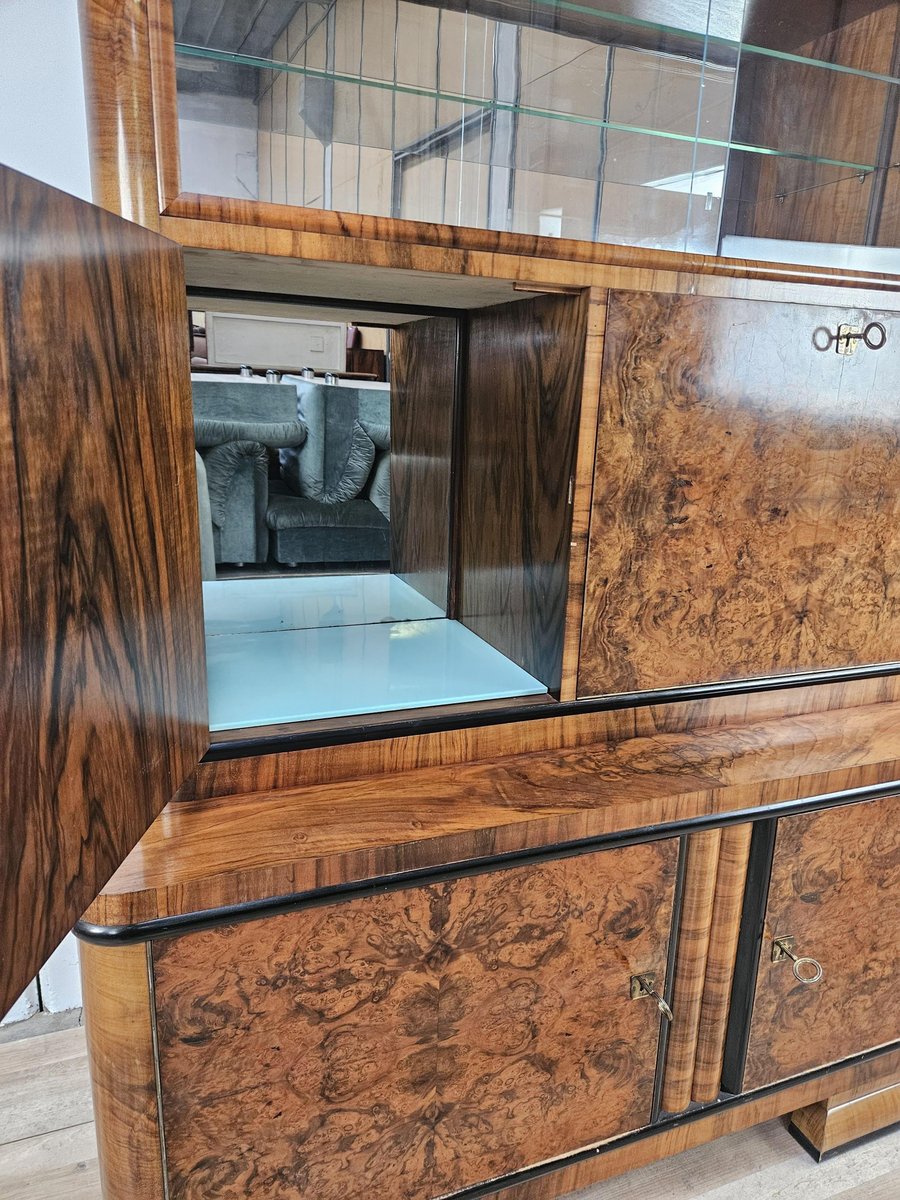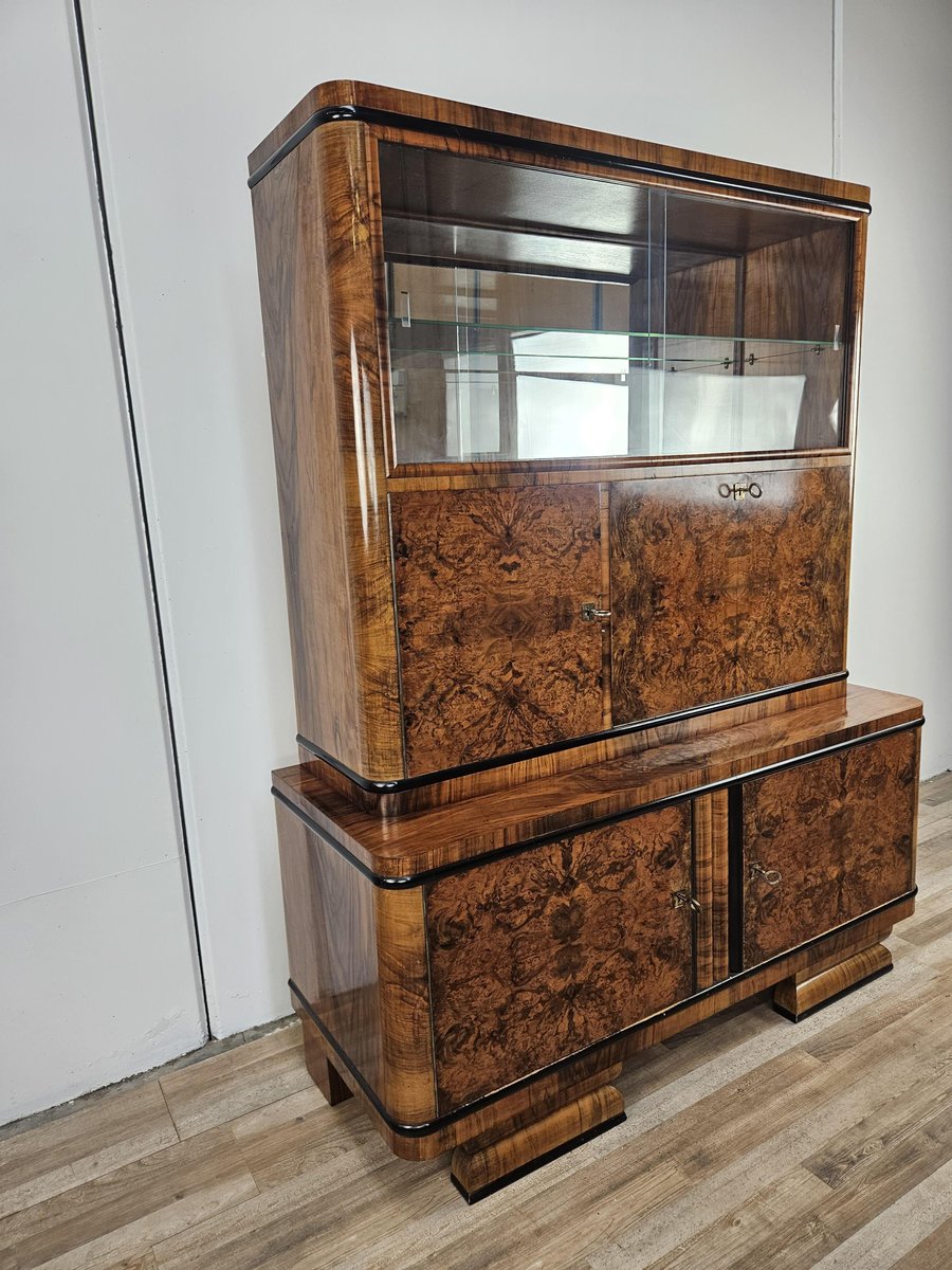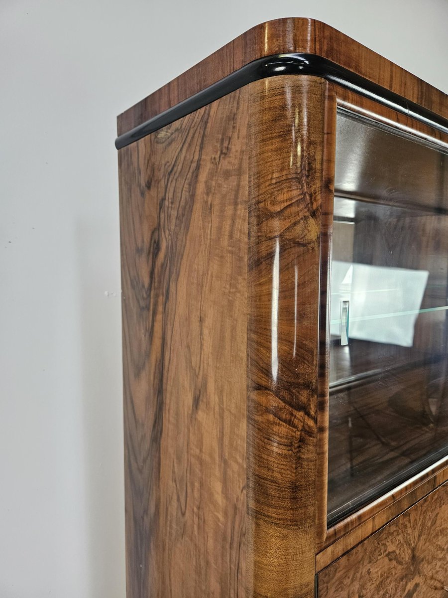 Vitrina Art Déco de plumas y nogal, Austria, 1940
