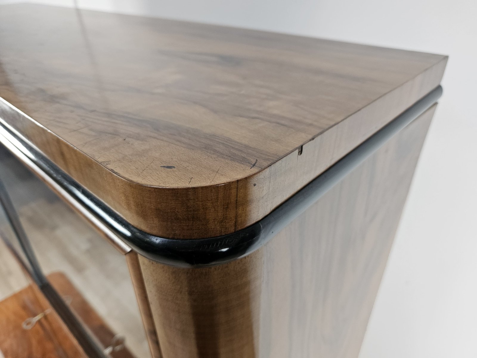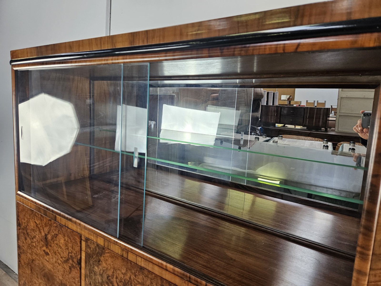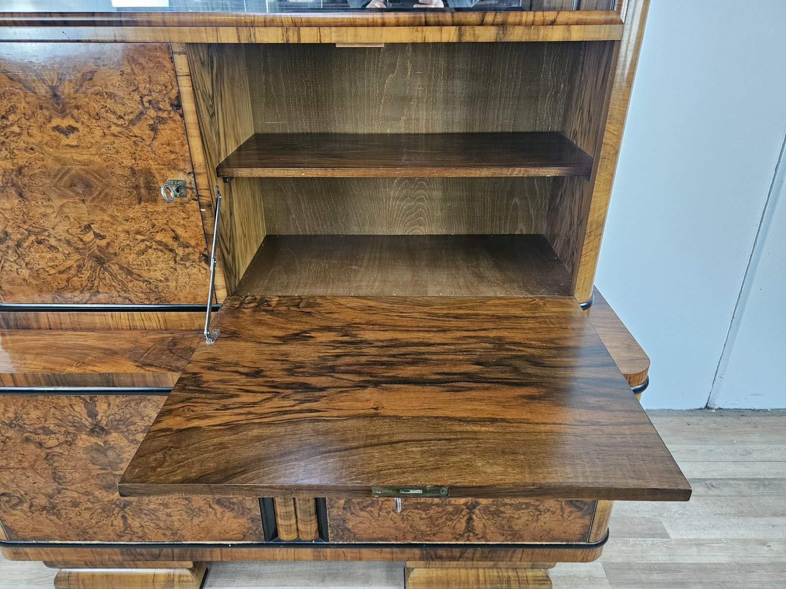 Vitrina Art Déco de plumas y nogal, Austria, 1940