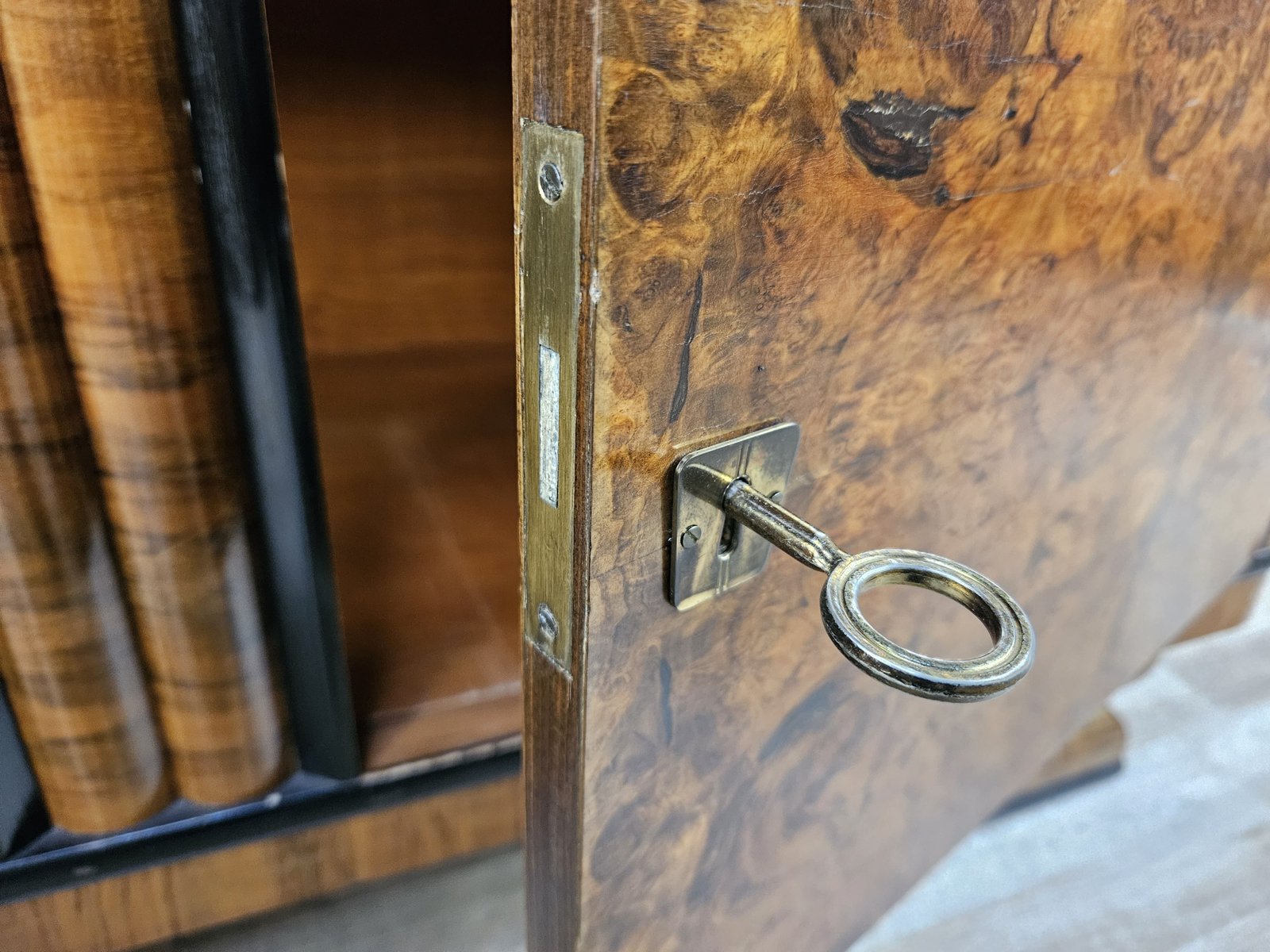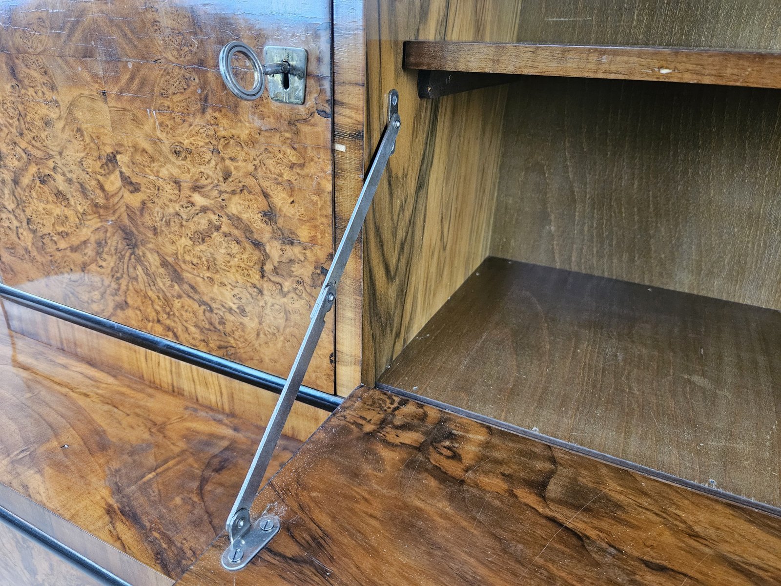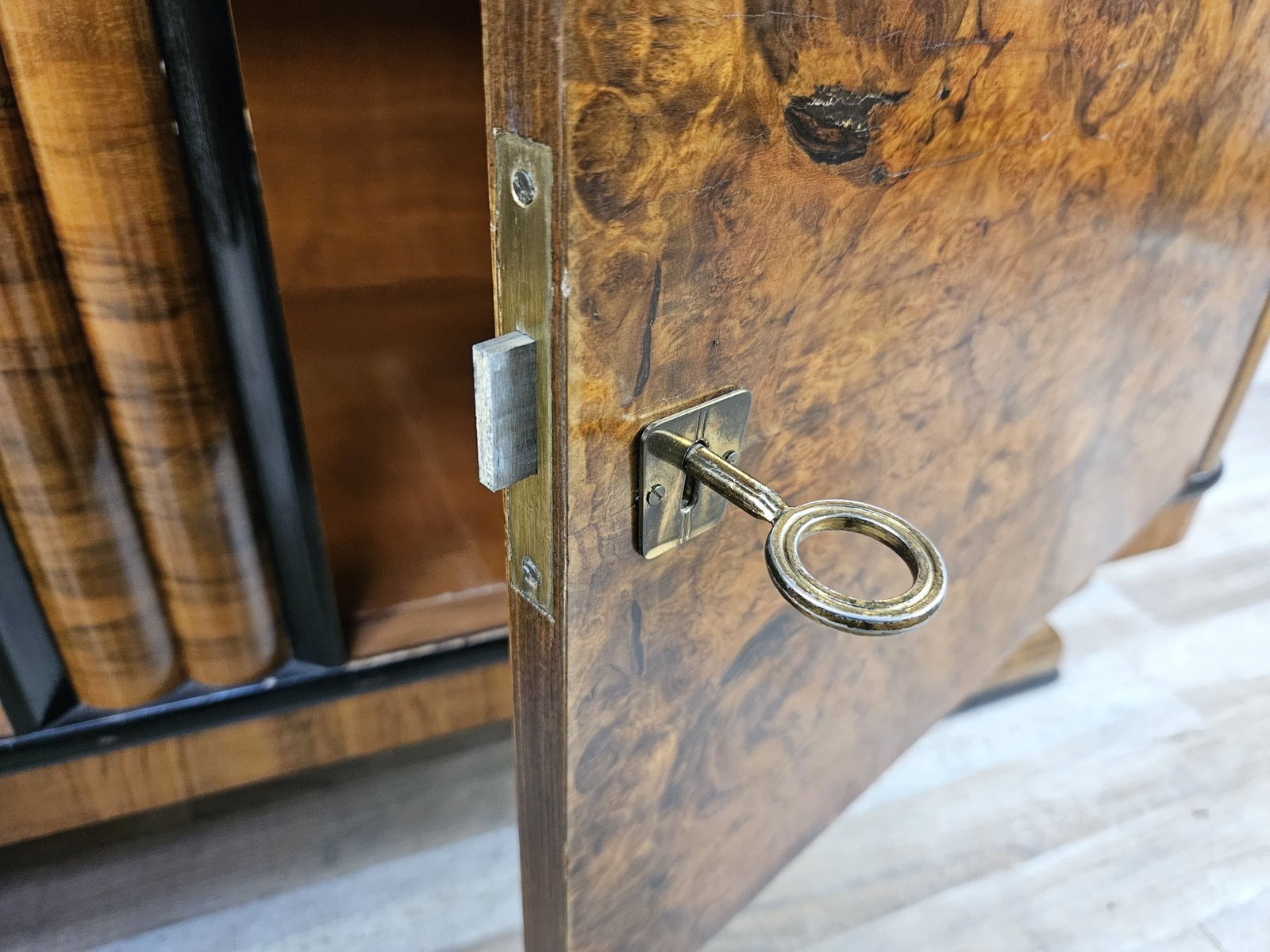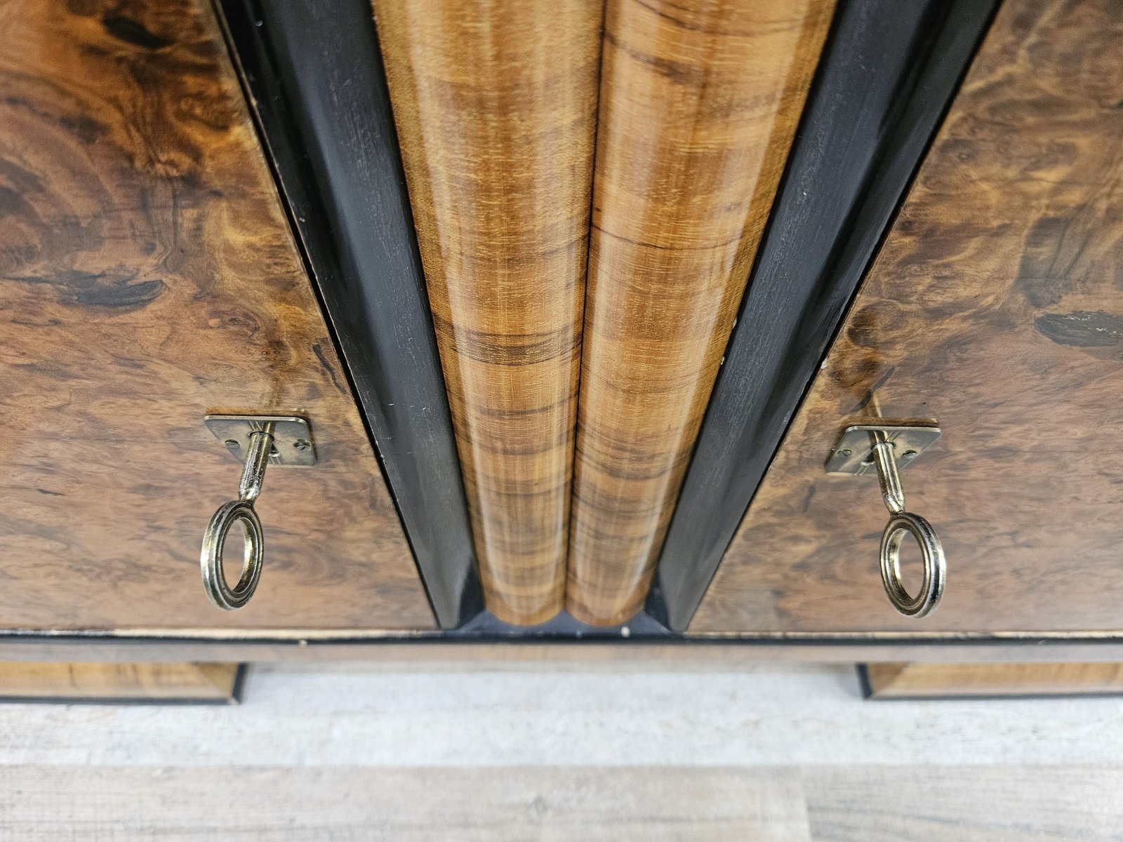 Vitrina Art Déco de plumas y nogal, Austria, 1940